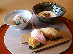 ![]() 草庵秋桜の料理 | ![]() スープ | ![]() お食事処の空間 |