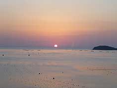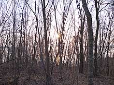 ![]() 観洋から拝めた日の出 | ![]() 朝日を浴びる森 | ![]() マツを残し歩く道をつける |