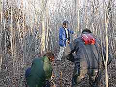 ![]() 土手にフクジュソウが | ![]() シュンランも生えています | ![]() 森を整備(全て観洋の鈴木さん撮影です) |