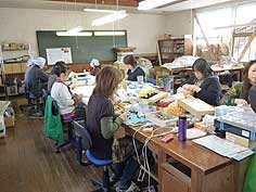 ![]() 山内鮮魚店の加工品コーナー | ![]() 古い木造の建物の入谷yes工房 | ![]() 大勢のスタッフが仕事を |