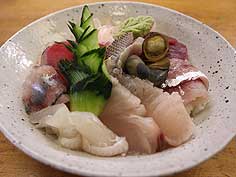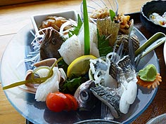 ![]() 鉢伏山のブナ林 | ![]() 新崎地区からの眺め | ![]() 風傍の刺身 |