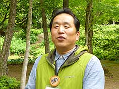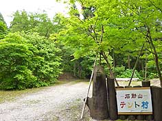 ![]() 澤一博さん | ![]() テント村の入口 | ![]() 明るい雰囲気の森 |