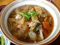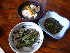 ![]() 昼にいただいた変わりそば | ![]() 泊めていただいたペンション | ![]() 夕食の一品 |