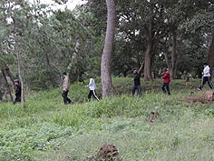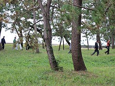 10月15日(火) モニタースタート | ![]() 松林の中を歩く参加者 |