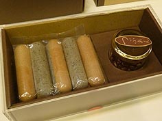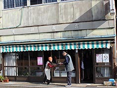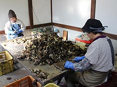 ![]() 麦ケ浦での牡蠣の仕事 | ![]() 滝川商店 | ![]() 店頭ではクッキーも販売 |