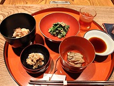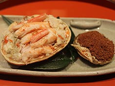 ![]() 先付 | ![]() 焼き魚 | ![]() 香箱蟹 |