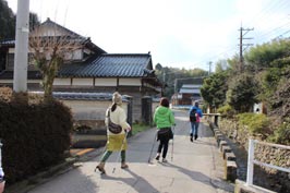 ![]() 道路沿いの川 | ![]() 集落の様子 | ![]() ひころの里のシルクフラワー |