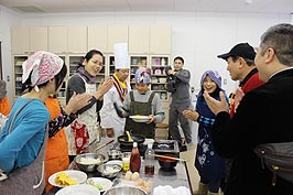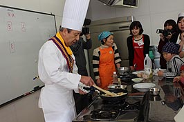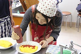 ![]() 北橋氏の実演 | ![]() オムライスを作る | ![]() メッセージをケチャップで書く |