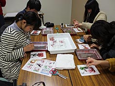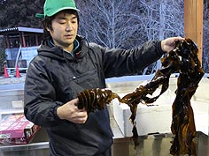 ![]() 海藻おしば教室 | ![]() 山内明美さん | ![]() 大きなわかめを持つ千葉拓さん |