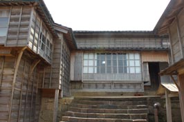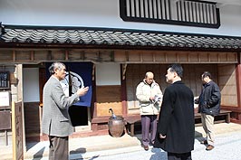 ![]() 家の前で解説をうかがう | ![]() 立派な造り | ![]() 蔵の前から見上げる |