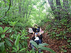 ![]() ブナ | ![]() オオイワカガミ | ![]() ブナの緑が目立つ |