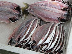 ![]() 道の駅狼煙のドーナツづくり | ![]() ブナの根元で | ![]() 渚水産のアジの開き |