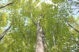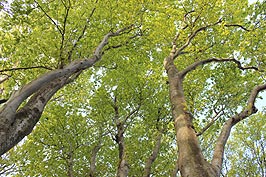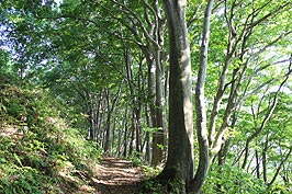 ![]() 黒峰のブナの巨木 | ![]() 間伐されたスギ林 | ![]() 大きなブナが並ぶ歩道 |