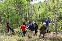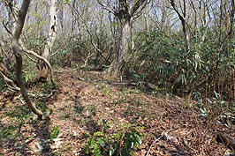 ![]() 漁師さんが植えたぶなの森 | ![]() 見上げると植林した森であることが分かる | ![]() 田束山のつつじ(背景に志津川湾が見えませんが) |
