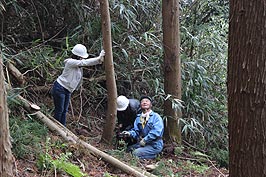 ![]() やすらぎの森 | ![]() 大きな木を切る | ![]() 間伐体験 |