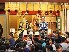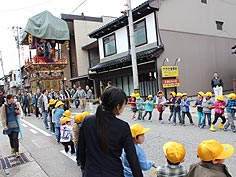 ![]() 風庵でいただいたそば | ![]() 諏訪町公民館で | ![]() 子どもたちが曳く |