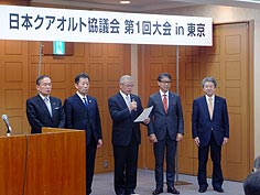 1月29日(木) 日本クアオルト協議会 | ![]() 妙高、上山、由布、田辺、珠洲の市長(左から) |