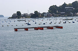 8月5日(水) 移住者と移住希望ファミリー | ![]() 齋藤さんの養殖いかだ |