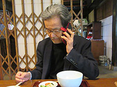 2016年2月5日(金) 由布院人めぐり | ![]() スマホを使う健太郎さん |