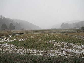 2018年12月14日(金) 能登から加賀へ | ![]() 雪が舞う能登事務所裏 |