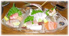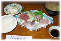 | 11月26日(火) 風来坊 雨の中を能都町へ。途中から天気がよくなり、青空が広がっていました。昼はぶらぶら散歩しながら、風来坊まで行く。前回お邪魔した時に昼も営業されているということだったので、のぞいてみる。座敷もみせていただくが、贅沢な空間の使い方でした。刺身定食1200円をいただく。美味しい。昼が食べられる貴重なお店です。昼はご主人一人なので、11:30〜13:00ぐらいが営業時間とのこと。人数がまとまっている場合は、予約していくとよい。夜は城端で織物会館の委員会で、織体験をしていただく。 | ![]() 風来坊の刺身定食 |