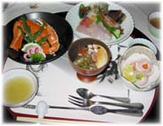 | 11月13日(水) 能都町ワークショップ 能都町に行く。夜はなごみのステーションでまちづくりワークショップ。食について議論する。まちの魅力の柱に食があります。能都町らしい素材にこだわった事業を行いたいもの。いかを民宿では朝食に出して下さるところが何軒もあります。「ぶり祭り」を冬場には行いたいものです。ポーレ・ポーレに泊まるが、事前に予約しておいたので、カニや魚を使った食事をいただく。4000円の夕食ということであるが、盛り沢山であった。 | ![]() ポーレポーレの夕食 |