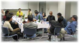 | 11月9日(土) 地域づくりセミナー3 松江に戻り、午後は地域づくりセミナーの3回目である。グループに分かれていただき、それぞれでテーマを絞り、企画書づくりに取り組んでいただく。さすがに3回となると、慣れたもので、手際が 随分よい。少し時間が足りないと思われましたが、しっかり企画書になっていました。最後にプレゼンまで行い、人気投票で評価を行う。繰り返しの成果は大きいと感じました。次の段階があるとすれば、より詳しい企画書づくりに取り組んでみたいものです。 | ![]() 懇親会 |
