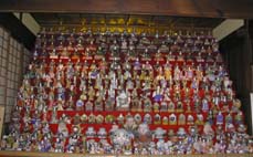 | 6月15日(土) 明智と岩村 岐阜県明智町の大正村と岩村町に行く。大正村では、駐車場で車をとめ、大正村役場、絵画館、大正ロマン館、大正展示館、大正村資料館、逓信資料館、おもちゃ資料館、天久資料館などを見て回る。大正村資料館には天井まで届く土びなの段飾りがあり圧巻であった。管理も行き届いていて、気持ちよい空間でした。ここでの大きな楽しみは名物の五平餅。各家庭で作っていたものとのこと、それぞれの家のみその作り方に特長があったそうだが、今回は大正軒の味を楽しませていただく。1本で十分な大きさであるが、好きな人は2本食べるようである。自家製の漬け物がついて1本150円は安い。岩村に向う途中に、明知鉄道の終着駅・明智駅に行く。そこで教えられた話で良かったのは、お座敷列車を仕立てて、寒天料理とこんにゃく料理を楽しむ会を行っていること。岩村では日本三大山城の一つに数えられる岩村城に行く。駐車場から800m歩き、てっぺんへ。風が心地良かった。眼前には山並みが広がり、緑の空間に鳥のさえずりが楽しげであった。まちに下りてからは、まず、かんから屋で名物・かんから餅とたまごうどんをいただく。作りたてのもちにあんこをからめたものが2個、すりごまをまぶしたものが2個、そして、きなこをまぶしたものが1個が一皿に乗って、350円であった。きしめんタイプの細いめんが入った玉子うどんも400円と安くて美味しかった。土佐屋という江戸時代の紺屋を復元した館も見学。展示作品は城端での商品開発の参考になるものが多かった。「女城主」というブランドで酒を製造販売している岩村醸造の酒蔵を見学し、試飲させていただく。最後に松浦軒本店でカステラを買う。昔ながらの製法で作っている感じの素朴なイメージである。 | ![]() 土びな ![]() 五平餅 ![]() かんから餅 |