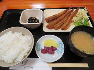 2021年2月22日(月) 移住希望者サポート | ![]() 漁火でいただいためぎすの唐揚げ定食 |