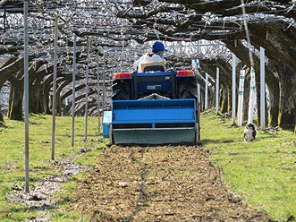 2021年2月13日(土) 移住希望者サポート | ![]() 奥谷の梨園での剪定枝の粉砕の様子 |
