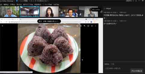 2021年7月9日(金) オンラインゼミ | ![]() オンラインゼミの画面(ブルーベリーおむすび) |
