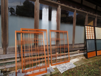 2022年1月11日(火) 障子張り | ![]() 障子張りを終えた戸 |