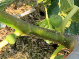 9時に珠洲のすえひろに到着。能登定住・交流機構の事業と決算、今年度の事業と予算について説明。最近の状況について話をうかがう。農の雇用事業を活用して、新規就農者を受け入れておられます。次に輪島の塩安漆器工房に塩安さんを訪ねる。漆芸技術研修所を卒業された方々を地域で受け入れる方策について課題があるとのことで、地域おこし協力隊の活用もありですね。穴水に移動し、なぎさガーデンで昼食をいただき、北川さんにも同じ説明をさせていただきました。次に宝達志水町に移動し、役場のロビーで柴田さんに説明させていただき、お話をうかがう。暮らし体験の家で、移住体験中の方より、制作いただいた動画を見せていただくが、結構な出来になりそうな印象でしたので、商工会長さんにも紹介いただくことに。午後3時半には祥会長さんを訪ね、移住希望ファミリーを紹介し、制作いただいた動画もご覧いただきました。商工会長さんは水曜日には商工会にいかれるとのことでしたので、次回はそれにあわせて事務局で相談できればと思う。その後、松浦さんのイチジク畑で、枝を吊る作業を拝見。6時過ぎには、小早川さんに来てもらい、動画をご覧いただき打ち合わせ。 | ![]() 小さないちじくの実 |