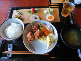 午前は加賀市役所で定例ミーティング。ぶなの森の活動報告と地域おこし協力隊の迫さんの活動報告。それぞれについての質疑応答。いろいろな移住希望者さんについての意見交換や空き家についての話も出ました。協議会としての手続きを早めに終えていただくようにお願いさせていただきました。その後に、借り受けて整備した空き家の賃借人の公募が可能になりますので。すでに整備を終えて時間が経過していますので、早めに次のステップに進む必要があります。昼食は3人でちょうちん横丁のしまで昼ごはんをいただく。久しぶりにご主人ともお会いすることができました。かりぐらしの家に戻り、書類を出力、金沢に戻る途中に、能美の里山ファン倶楽部に事務局に立ち寄り、届いていた郵便物を預かり、市役所に立ち寄って書類を提出。 | ![]() しまの昼ごはん |