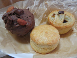 朝9時までに加賀の久保田ファームに農業希望者さんを連れて行き、作業体験をさせていただく。最初だけ様子を拝見。まず、「水やり」をしていただきましたが、奥様の説明が説得力がありました。まず、ホース内にたまっている水を出します。ハウス内に置いてあると、天気が良いとホース内の水温は40度近くになっています。それをそのままやると苗をいためるので、水温が下がったことを確認してからまきます。先端部を上に向けて、やさしく水をまきますが、左右にきれいに往復させて徐々にまきます。苗を育てているパッドの端は空気に触れているので、水分が蒸発しやすいので、端の方は余計目に水をまきます。芽が出たばかりの野菜とある程度育ってきている野菜では水の量を変えますとのこと。芽が出たばかりの野菜に対しては、水が浮くほど水をやりますが、ある程度育った野菜は水をやりすぎると根が腐る恐れがあるので、ほどほどにします。この加減が難しそうですが、理屈としてはよくわかりました。たかが水やりですが、経験により蓄積されてきた知はわかりやすかったです。そのようなことを学ばせていただけて有難い。久保田夫妻はお二人とも教え上手ですね。その後、袋詰めなどもしていただいたようですが、12時過ぎまでで終了、体験者さんを加賀温泉駅までお送りして本日のサポートは終了。その後は、元気村で久保田さんのトマトなどを購入。金沢に戻る途中に能美市内をめぐる。能美根上駅周辺を歩き、次に寺井地区の中心部にある焼き菓子「こびり」さんで買い物。さらに辰口地区にも足を運ぶ。コンパクトにまとまった自治体です。 | ![]() 久保田ファームでの農業体験 ![]() こびりの焼き菓子 |