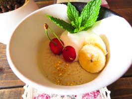 本日も9時前に宝達志水町の暮らし体験の家に行き、移住体験中のご夫妻と羽咋の永光寺へ参拝に。毎週お近くに曹洞宗のお寺で座禅をされているとのことで、今回の旅の最優先希望が昨日の総持寺でしたが、総持寺で永光寺のことをお知りになり、こちらも訪ねることになりました。その後、中能登の不動滝へ。滝の近くは涼しく心地よかったです。次に羽咋の神音カフェを紹介した後、道の駅神子で買い物。昼食は妙成寺門前の浄楽でそばをいただく。婚活イベント中でしたが、参加者の昼食が終わった後だったので、入れていただきました。食事の後は、妙成寺を参拝。歴史を感じる良き空間です。宝達志水町に戻り、宝達集落の「そらいろのたね」へ。まだお客さんがおられましたが、一段落しておられて、青江ご夫妻に話をうかがうことができました。上田出の家の中をご覧いただいた後、ちゃれんじで買い物をしてもらい、暮らし体験の家にお送りして、金沢に戻る。 | ![]() そらいろのたねの「くずプリン」 |