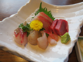 昼前には宝達志水町の暮らし体験の家に行き、受入準備の確認。昼をすしべんでいただき、午後も暮らし体験の家で資料作成。夕方には、移住希望者さんが来られたので、話をうかがい夕食へ。美食倶楽部きたもとでいただく。久しぶりでしたが、感染対策を徹底しておられました。地域でも感染者が出ていますので、注意されています。万が一感染すると、症状が軽くても仕事ができなくなり、お店の場合は営業停止に追い込まれそうですから。刺身の盛り合わせをいただきましたが、ご飯セットをつけて、刺身定食のようにしてもらう。夕食としても十分な内容になります。他にもお客様がお越しになっていて何よりです。 | ![]() きたもとの刺身盛り合わせ |