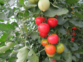 朝9時前に宝達志水町にお邪魔して、山崎地区に設置された檻にかかったイノシシを拝見させていただきました。電気で殺処分されましたが、あっけないものでした。その後、上田出の家で先日使用されていたシーツ類をはがし、車に乗せて加賀に移動、山代温泉のコインランドリーで洗濯乾燥。12時前には移住希望者さんが来られたので、山代温泉の漁火でランチ。農業希望でしたので、ぶどうやさん西村、平松牧場を見学した後、元気村で出品されている野菜類を確認してもらう。次に奥谷の梨園で杉森夫妻と少し話してもらい、加賀フルーツランドへ。岸支配人と面談。その後は丸山ぶどう園にも顔を出す。橋立の公園を見学した後、橋立漁港、海水浴場も紹介。片野海岸を少し歩いてもらい、最後に久保田ファームで話をうかがう。帰りに大聖寺の三津野で夕食をいただき、温泉ぐらしの家まで送る。 | ![]() 久保田ファームのトマト |