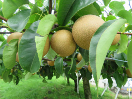 朝9時前に宝達志水町役場に移住希望者さんと行き、地域おこし協力隊について話をうかがう。その後、加賀に移動。大聖寺のしまで昼ごはんをいただく。今日も仕事がされている内容でした。その後、交流センターさくらを見学。インキュベーション施設の部屋は5つ空いていました。午後は奥谷の梨園で杉森夫妻から話をうかがい、分校のぶどうやさん西村で修行中の田中さんや西村さんから話をうかがう。最後に加賀フルーツランドで岸支配人と面談。小塩辻の梨園も紹介し、宝達志水町に戻る。 | ![]() 奥谷の梨 |