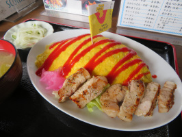 朝9時前に宝達志水町の上田出の家に行き、移住希望者さんと面談。その後、いちじく畑を紹介し、網ぶどう園にお邪魔しました。ちょうど、地域おこし協力隊の小早川さんが来ていたので、少し話をしてもらいました。網さんの奥様から、移住希望者さんの話をうかがったので、最初に窓口になっておられたという酒井農園の直売所にお邪魔して名刺をお渡しし、連絡いただけるようにお伝えさせていただきました。善は急げですので。志お食堂でオムライスを食べていただく。オムライスの日ということで100円引きになっていました。ポークソテーオムライスを注文してみました。一旦上田出の家に戻り、移住希望者さんを見送り、移住者さんから話をうかがう。敷浪の暮らし体験の家で洗濯を行い、その間に殺菌作業を行う。コインランドリーで乾燥させ、一通り作業を行う。 | ![]() 志お食堂のポークソテーオムライス |