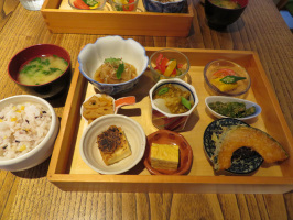 朝8時半過ぎには法務局で印鑑証明を発行してもらい、郵便局で収入印紙を購入。9時過ぎには、イノクチモータースで車の名義変更の書類に押印。金沢事務所で県に提出すべき契約書も作成し、近所の郵便局から発送。10時にはドコモに行き、新たなスマホを取得。加賀に行き、移住者さんとお母さんとひるよる食堂オオハタでランチ。午後は移住者さんを市役所、警察と案内し手続き。一旦住まいにお送りし、当方は電気屋でインクを購入し、かりぐらしの家で、移住者さんの名刺を作成し、届ける。能美市に移動し、サテライトオフィス候補物件と移住体験の家の候補物件を内見させていただく。 | ![]() オオハタのランチ |