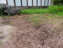 午前は衣料品店とショッピングセンターで買い物。昼をいただいた後、宝達志水町に行き、上田出の家のシーツ類を洗濯乾燥に。その間に庭の草取りを行う。今年の春から2度刈っていますが、すぐに伸びてきます。こまめに根っこから引き抜くのが一番かと思い、そのように作業を行うが、おかげで指が痛くななりました。夕方雨が落ちてきたので、途中で断念。時間を見つけて追加の作業を行いたい。 | ![]() 草取り後の上田出の家の前庭 |