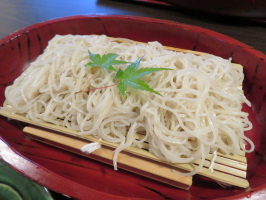 朝9時には、温泉ぐらしの家に行き、新しい地域おこし協力隊員と動く。まず、山中温泉へ、うるし座を見学。山中漆器の現状を感じていただけたであろうか。次に、大杉茶屋に行き、草団子を購入。10時前には、山中BASEに行き、チェックアウトされる方を加賀温泉駅まで送る。その後は、東谷に行き、辻邸でお話をうかがう。70代、80代の方々はお元気です。晴天の下、畑仕事に来られています。12時前に和楽庵で昼食。美しく美味しいそばをいただきました。13時前には、温泉図書館みかんに行き、地域おこし協力隊3名の活動報告会に参加してもらう。徐々に市民の方がお越しになり、席が埋まっていきました。新しく地域おこし協力隊として活動する人にとっても、有意義な時間になったはずです。午後4時過ぎには、不動産会社に契約書を取りに行き、温泉ぐらしの家に送って、本日の活動は終了。 | ![]() 和楽庵のそば |