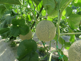午前10時から加賀市役所で定例のミーティング。迫さんの地域おこし協力隊としての活動報告は最後でした。終了後、滞在中の移住希望者さんと合流し、北上することに。すでに昼を過ぎていたので、北陸食堂でランチ。能美市に移動し、風来の西田さんの畑を見学し、西田さんに紹介。書籍と漬物も買わせていただきました。吉川農園にも行き、メロンを購入し、吉川さんを紹介、畑も見学させていただきました。次に宝達志水町に移動。砂山ぶどう園にお邪魔してお話をうかがう。スイカ畑を紹介した後、道の駅のと千里浜も見学。まだ、地元のスイカは並んでいませんでした。暮らし体験の家に入ってもらい、明日の予定を確認して、サポート終了。 | ![]() 吉川農園のメロン |