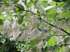 朝早めに金沢を出て能登へ。まずは志賀町大島の空き家バンク登録物件を確認。畑付き物件で、前庭も広い。町役場にも顔を出し、空き家バンクの内見をお願いし、所有者さんに連絡をしていただくことに。その後、アスクに行き寺岡さんに星野さんの本の見本をお渡ししあとがきを確認していただく。山口木材にもお邪魔して相談。木工教室に集まっているメンバーが10数名いるので、皆さんの協力いただくと面白いプログラムができそうです。そこから能登町に移動するが、途中穴水のすしべんで昼をいただく。午後1時からは能登町矢波の集会所でステイサポートプログラムでの祭り参加の打合せ。最後は鉢伏山に上がり、移植ブナの様子を確認。林道沿いにはハクウンボクがたくさん咲いていました。タニウツギも目立ちまずが、多くの白花をつけるハクウンボクも見事です。 | ![]() ハクウンボク |
