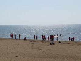 9時には加賀に行き、滞在中の移住希望者さんと加賀を巡る。まずは、鶴仙渓をあやとり橋からこおろぎ橋まで歩く。久しぶりに森の中の道も通りましたが、竹が伸びてきていましたので、次の機会には切っておきたい。ゆげ街道にあがり、我戸幹男商店をのぞき、撮影ポイントを紹介した後、うるし座も見学。山代温泉に戻り、あらや滔々庵にお邪魔し、女将さんの話をうかがい、館内を案内してもらう。片山津に移動し、玄命庵で昼をいただき、総湯や中谷宇吉郎雪の科学館を紹介し、橋立へ。海水浴場で海を見つめ、まるや水産を見学。泉の浜展望台から眼下に砂浜を眺め、海に近い砂利道を黒崎まで走り、片野海岸へ。うみぼうずで飲み物をいただきながら、高校生たちの様子を眺める。大聖寺の空き家を外から眺め、最後に柴山の家の中をご覧いただき、山代に戻る。 | ![]() 片野海岸で |