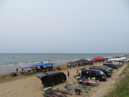 早めに宝達志水町の暮らし体験の家に行き、午後2時からオンラインで移住相談。移住体験の家を紹介し、お越しいただく日程調整をお願いする。終了後メールを送っていただき、紹介した移住体験の家や企業の情報を送信。その後、ホームセンターに行き、自転車のタイヤの虫ゴムを買ってきて、取り換える。これでしばらくは大丈夫ですかね。その後、家の中に掃除機をかけて、移住希望者さんの到着を待つ。午後4時には着かれたので、周辺の紹介と移住に向けての話をうかがう。明日は、ご自身のペースでチェックアウトしていただくことにしました。暮らし体験の家に来る前に、千里浜の様子を見に行くが、今浜の入口から1区間だけ通行止めになっており、水上バイクの大会をされていて、多くの車がとまっていました。 | ![]() 千里浜の様子 |
