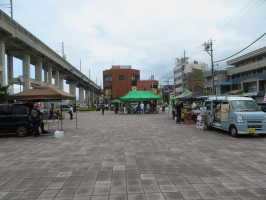 朝7時半ぐらいに到着する夜行バスで移住希望者さんが来県。実際は30分ほど遅れて来ました。地域に関わる仕事をしたいという希望をお持ちでしたので、森本駅に行き、イベントの様子を拝見。軽トラ市とミニコンサートが行われていました。一通り拝見し、コーヒーもいただいた後、東原まで行ってみましたが、途中の道路に土砂が流れ出していて交互通行になっていました。再度、森本駅に戻り、コンサートを少し拝見した後、ぶどうの森で早めのランチをいただく。ピザとパスタを注文し、取り分けて楽しみました。ぶどうの森の中も見学して回りましたが、徐々に広がっている印象でした。その後、宝達志水町に向かうが、河北潟干拓地を通り抜け、内灘町の液状化で被害が激しく出ているエリアを紹介しながら走る。宝達志水町の暮らし体験の家では、協力隊の池田さんに紹介し後をお願いし、当方は加賀に移動。移住者さんと面談。元気村とスーパーで買い物をして戻る。 | ![]() 森本駅前広場でのイベント |
