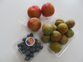 午前は家族で早めの外食をして買い物。午後は宝達志水町の暮らし体験の家に行き、移住体験者さんたちが使用されたシーツ類を洗濯。半分はコインランドリーで乾燥に。その間に羽咋のホームセンターでヤカンを購入。空焚きをしたためか、かなり傷んでいますので更新です。近くの押水特産直売所にも顔を出し、プラムとブルーベリーを購入。今年初めてですが、これから増えていくとのことです。金曽農園に電話したら、桃の収穫は来週からとのことです。楽しみにしていよう。 | ![]() 押水特産直売所で購入した果物 |