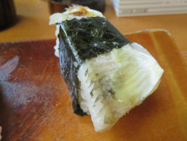 10時前に加賀に行き、移住者さんのサポート。荷物を車に乗せ、元気村で買い物。住まいに荷物を入れた後、昼食へ。一平寿司に11時過ぎに入店しましたが、すでにお客様が複数入っており、しばらくしたら満席状態に。駐車場もいっぱいで人気の程が分かります。珍しいにぎりを作っていただけるのが人気の秘密かも知れません。今日は「はたはたの炙り」が出てきました。加賀らしい寿司ですね。カウンターで順番に出てくるのが昔ながらの寿司屋という感じでいいです。隣には外人さんのグループが座っていましたが、日本語も寿司の食べ方も上手でした。常連という感じでした。午後は少し能美市の寺畠の家で庭のウドの根の掘りおこし作業を行うが、根が深くて作業に手間取る。まだ残っているので、何度か作業を行わないと終了しないかも。30数度まで気温が上がっているので、続けて作業を行うのは無理ですね。 | ![]() はたはたの炙り |